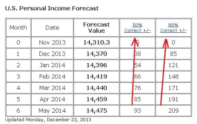 The potential range of a forecast's value is found by taking the published forecast value and both adding and subtracting