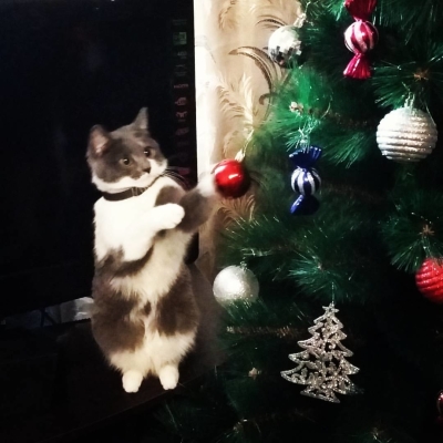 Когда я поставила ёлку первое что она сделала это вскарапкалась по ней на верх (жаль не успела сфотографировать). Каждая вторая мною повешенная игрушка , вешалась по два раза (так как она прыгала и скидывала их). Алисе рада , а я бегаю за игрушками постоянно=) А ваши питомци помогали вам с украшением? Ну или наоборот...хихи.=))) С Наступающим Всех!!!
