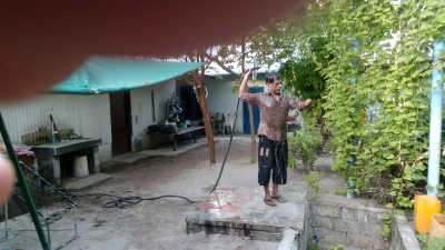 for another week.We reached our premises a bit late in the morning than we had planned, and luckily there was no sign of anyone outside. So we began the next task- I doused myself with cold water from the hose and as it was the beginning of a warm Friday morning and especially after a good jogging I felt refreshed and all along my friend clicked photos. And before anyone came out to witness this unusual ritual, we got into the safety of our respective rooms.