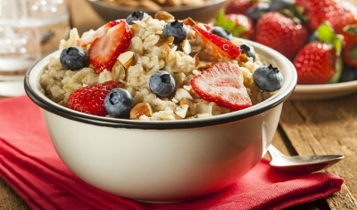 Здоровое питание состоит из овсяной каши на завтрак. В ней содержится много углеводов что обеспечивает нас энергией на весь день. В овсянке содержится клетчатка, которая нормализует пищеварение и очень полезна людям с повышенной кислотностью желудка.