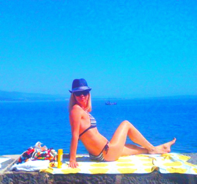 This is a picture of me from yesterday at sea. Behind me is my town Rijeka! Beautiful blueness!