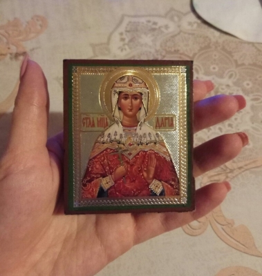 Я целую неделю думала, про какой же подарок написать. Обычно, мне дарили либо то, что нужно, либо деньгами. И в последние годы я даже не могу припомнить, кто и что дарил. Это не хорошо не плохо просто так есть. Но один подарок запомнился мне на всю жизнь и до сих пор сохранился у меня. Моя семья достаточно религиозна, поэтому в рождество мы почти всегда ходили в церковь. Однажды, когда я была совсем маленькой, мы с мамой в канун праздников зашли в храм. Мама дала мне деньги, чтобы я купила в церковной лавке свечи. Когда подошла моя очередь, я увидела очень красивую икону и попросила показать её мне. Эта икона была с изображением моей святой и была очень красивая. У мамы не было собой денег чтобы её купить, поэтому, полюбовавшись св.Дарьей, я отдала икону продавщице. Когда я ставила свечи, ко мне подошел мужчина, который держал в руке ту самую икону, которая мне так понравилась. Этот незнакомец подарил мне икону моей святой просто так. Этот подарок до сих пор радует меня каждый день. И когда мне тяжело на душе, я смотрю на эту икону, и мне сразу становиться легче. Этот лик святой напоминает мне о том чуде, которое совершил незнакомец для маленькой девочки.