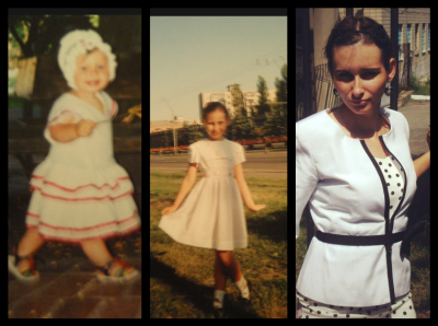 В детстве у меня определенно был '' синдром невесты ''.Мама наряжала меня в красивые платья, особенно белые, мне это очень нравилось и я подсознательно хотела выйти замуж в красивом подвенечном платье, папа тоже пытался меня по-своему одевать, в спортивные костюмы.Но тогда, папино влияние на мне не отразилось, и лишь сейчас - я- фанатка Reebok и Adidas.