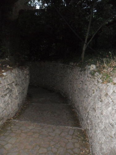 On the left, while approaching the end of this road, seen the walls of a medieval basilica near the point where the walls join the fortifications external connectors.