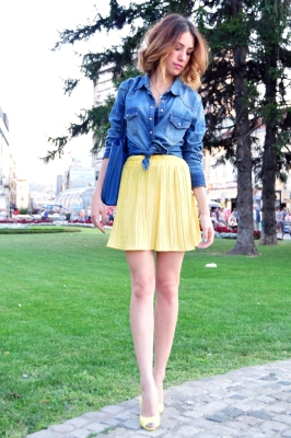 Denim shirt - One of my favourite parts of summer outfit. I always put it in my bag when I go out - if night gets cold. Summer is perfect time for denim shirt, because it looks very good with summer neon colors.