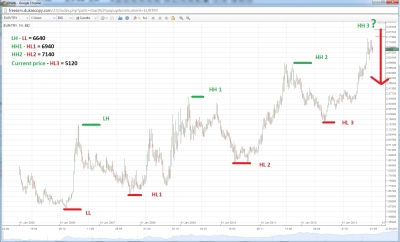 On the picture I spotted highs and lows and I assume finishing new high and new local downtrend way bigger than 2 000 points !!! Any idea for a good entry signal? I´ll suggest multiple entry around price 2.84 but be careful with weight of positions. Do not risk too much.