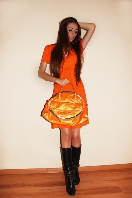 Я нашла платье, которое носила давно, а точней я его одела несколько раз. Оно, ярко оранжевого цвета.