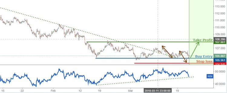 Buy above 105.56. Stop loss at 104.84. Take profit at 107.88.