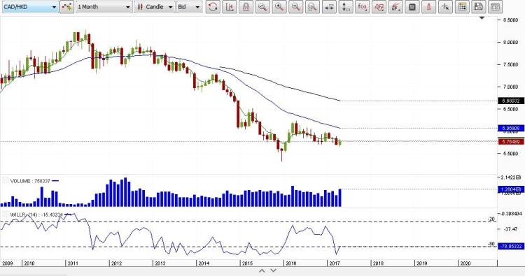 1)CAD/HDK WEEKLY CHART EXPLANATION William % R -over SELL condition ema (5,30,90)- down trend target- 5.7500 it may go further high MONTHLY EXPLANTION CHART William % R - over sell condition ema (5,30,90)- down trend