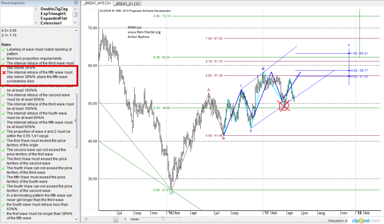 По нефти произошла отмена предидущего сценария по причине нарушения правил внутренней структуры пятой волны.