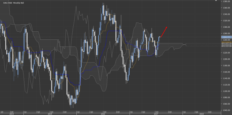 Daily price action is likely current to continue bullish targeting the flat kumo on the daily chart. While the monthly does not say much, July monthly candle looks bullish.