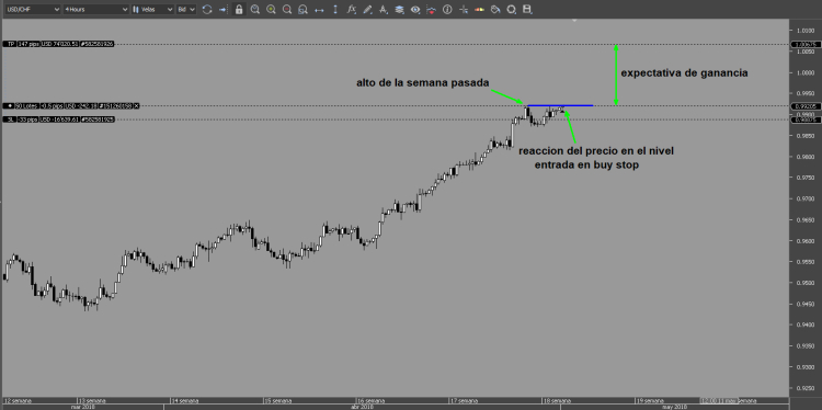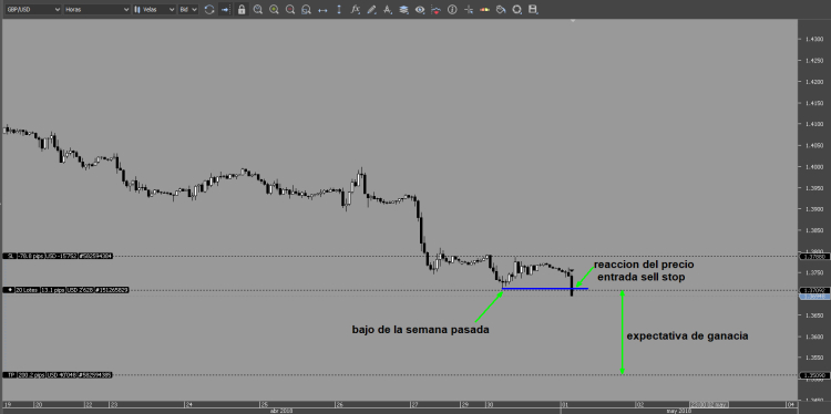 LA GBPUSD viene haciendo un ciclo bajista, en la linea horizontal roja vemos que el precio rompe la secuencia de ese ciclo y da inicio a un nuevo ciclo, por lo que entramos en compra, esperando que el precio haga un movimiento al alza, que cierre el ciclo de bajada. El precio debería de dar un movimiento fuerte en esta semana.