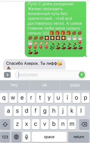 LeftCenterRightНедавно у моего парня было день рождение и появился хороший шанс написать милое и романтическое сообщение. Чаще всего мы с ним переписываемся совсем по-другому , мы прикалываемся ,ну или ,как все пары ругаемся. По натуре я человек сухой и чтобы от меня получить романтическое сообщение или письмо , надо очень сильно постараться. С одной стороны я не любитель всяких милостей и мимишности через переписку, но иногда выразить таким способом свои чувства и мысли гораздо легче чем в реа…