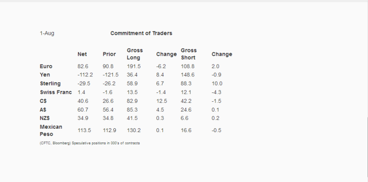 The August 1st 2017 report suggest EURUSD Long contracts shrinked by 6K whereas Short contracts increased around 2K. However, the net long positions remain at 82k (Gross Long 191.5 Minus Gross Short 108.8). This suggest some selling interest is arising on this pair.