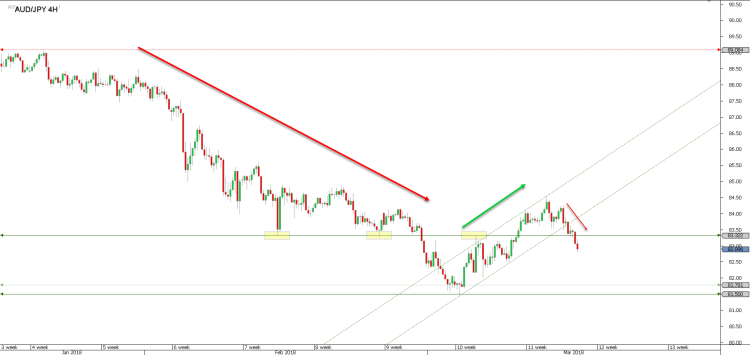 La coppia AUD/JPY, dopo una falsa rottura di 81.500 circa, è ripartita verso la resistenza a 84.500. Da poco ha rotto la resistenza di breve periodo a 83.322.