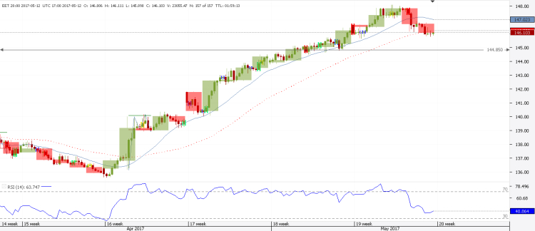 - The support level 146.7 is under test as a former resistance level where held the price back for more than a year, the break out has occurred last mid September, will it hold the price from going down again and succeed as current support level, or fail indicating false break out last month, the expected prediction that the pair would consolidate around the 146.7 level  till we have a confirmed break out for resistance level 152.677 or support level 141.105
