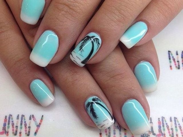 Чтобы продлить лето для себя, я решила сделать себе особый маникюр... в этом году я так и не увидела море, потому море и пальмы у меня на ногтях поселились) Нежно-голубое море и пал…