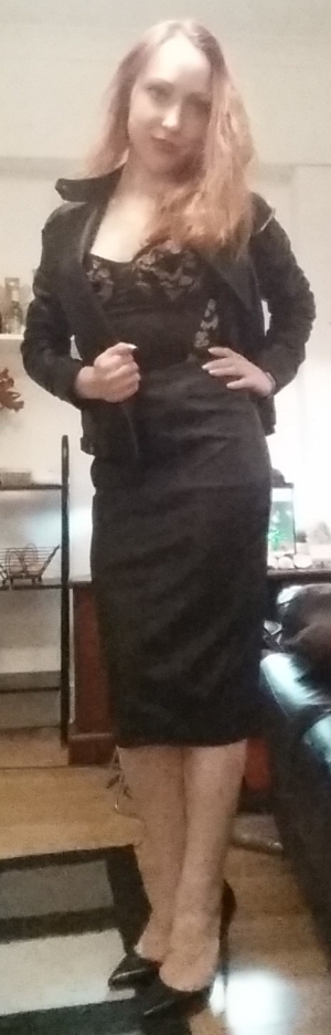 I would start with a classic black leather pencil skirt, which I think would compliment each woman‘s figure well. Then since lace is one of the trends for this season in London, I would choose a lace corset to make the look even more femine. And to add a bit of rocky edge to it, I would choose a black l…