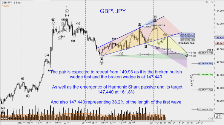The pair is expected to retreat from 149.93 as it is the broken bullish wedge test and the broken wedge is at 147.440