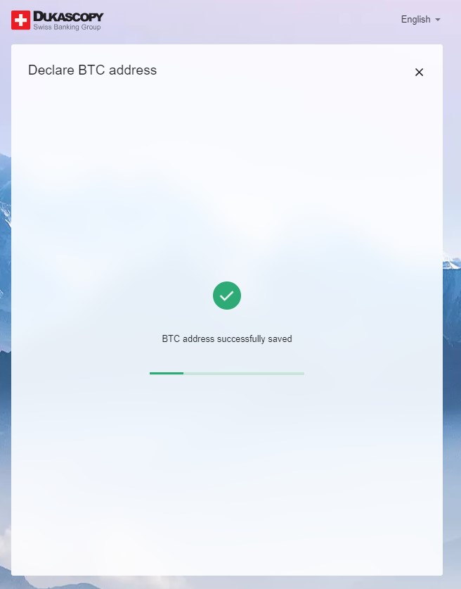 إذا كان التوقيع صحيحًا، فسترى تأكيدًا بأن عنوان BTC الذي أعلنته قد تم تسجيله بنجاح.
