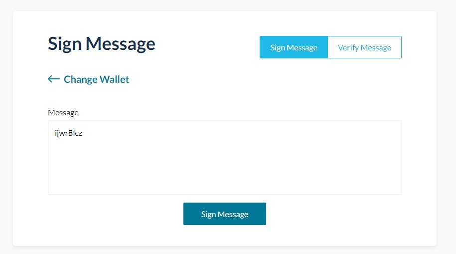 يتم دعم وظيفة توقيع الرسائل من قبل العديد من محافظ الايثيريوم الشائعة وموارد البلوكتشين العامة. يتم تشجيع العملاء الذين يمرون عبر إجراء توقيع الرسائل أثناء إعلان عنوان السحب على التحقق مما إذا كانت هذه الوظيفة مدعومة من قبل مزود حلول المحفظة المشفرة.