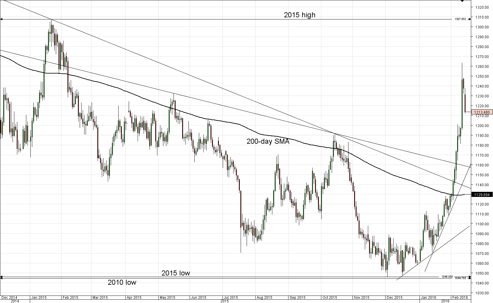 Equity trading in America will be closed in the beginning of this week, as the country celebrates the President's Day. Therefore, all focus among gold traders will shift to other regions that are usually considered as less influential for the bullion. Nevertheless, the ECB President Mario Draghi speaks today in Brussels in a testimony before the European Parliament. Additionally, some news from Australia and New Zealand are likely to shake markets in the late evening. Retail Sales from the smaller South Pacific country are out at 21:45 GMT, as analysts foresee a healthy 1.4% gain in the fourth quarter 2015 after a 1.6% pick up in Q3. Meantime, the Reserve Bank of New Zealand will release its new inflation expectations for the country at 2:00 GMT on Tuesday. Since early 2015 the two-year CPI estimate has been unchanged at 1.9%. Alongside, the Reserve Bank of Australia will publish the monetary policy meeting minutes at 0:30 GMT tomorrow where hints concerning extra rate cuts are a likely outcome.
