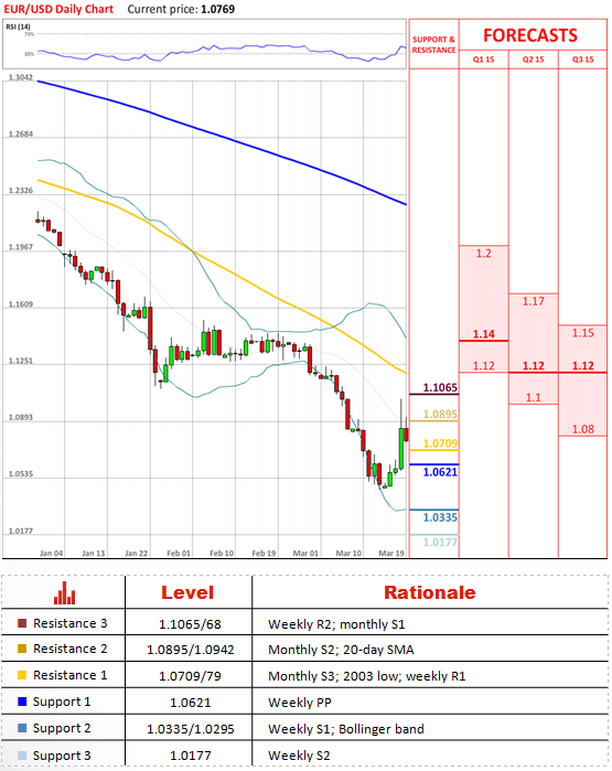 美联储在周三发布声明后,欧元/美元展示出自2000年以来的最大升幅,因为之前欧元/美元一直在大幅下跌。技术指标中的6个指标一度显示交易达到1.10上方。日内增幅最高超过400点。但欧元随后小幅下跌,目前位于2003年低位的1.08附近。尽管日技术指标仍旧看跌,但那时欧元在周四不太可能大幅下跌。