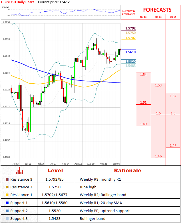 昨天英镑兑美元设法逼近周第一阻力位之上,尽管此刻似乎不愿意更进一步,同样考虑到缺失任何日和周的技术指标提供的明显的信号。然而,临近的上升趋势线可能会拉动穿过附近的低点,比如说达到七月9日,八月2日和八月28日位置,货币对保留了中期看涨的潜力。