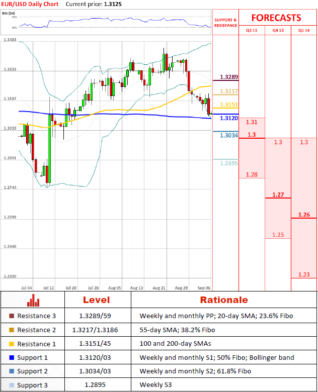 虽然有一些理由相信,欧元兑美元不会获得由100天和200天均线组合的支撑,但是结果价格无法在超过阻力位在1.3217然后下降了80点。现在货币对交易低于移动平均线,但没有违反周和月第一支持位水平,经济复苏的潜在意义仍然存在。然而,如果1.3120/05被放弃,目标可能被设置为1.2745。