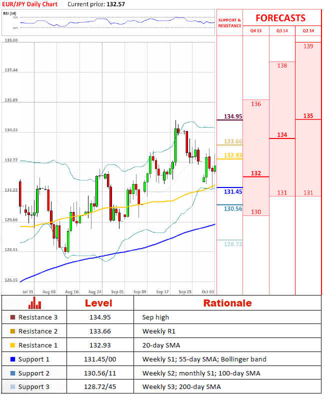 货币对反弹至55日均线,目前在周和月枢轴位交易并且正在测试20日均线。尽管近期的看跌我们看到越来越多的信号是131日圆应该提供足够的支撑对于货币对恢复它的复苏。如果货币对跌破131日圆我们可能看到它尾随130日圆下方,然后到达128.7日圆。所有的下行风险将被提升如果货币对峰值在133.7日圆上方。在这种情况下,134.9日圆也将放在图上。