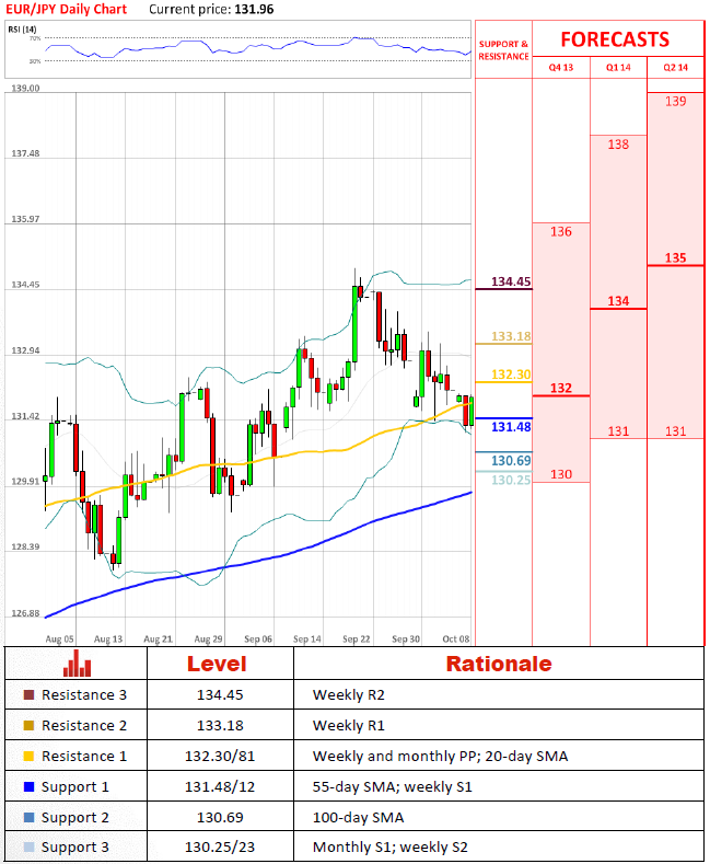 目前货币对通过55日均线停止贬值。看看中期和长期技术我们可能谈到货币对有机会可能开始升值,如果它反弹。为了提升大部分压力,然而,货币对应该提升超过132.3。如果货币对跌破131.4,我们可能预计100日均线应该提供给货币对强劲的支撑。