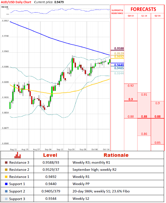 货币对已经受限于95美分水平相当一段时间了,但正如我们能看到一样,它本周开始明确的意图去提升在它的上方。对于它而言主要的障碍应该是9月高点在0.953,货币对提升在它上方可能提升大部分下行风险。一些空头可能通过0.959产生,但它不应该引起任何主要的抛售。为了否定这种看涨,货币对应该跌破0.94。