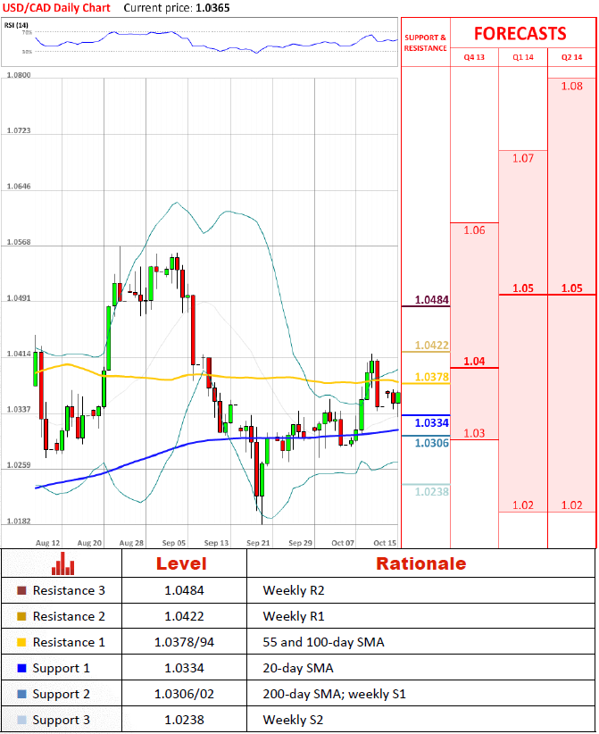 20日均线已经停止了货币对进一步下跌,它从1.042骤然下跌并且似乎持续进一步支撑它。万一它实际上跌破20日均线,它可能放入决定性的支撑点1.024。为了提升大部分这种下行压力,货币对不仅应该在峰值上方1.037,而且也在1.042。
