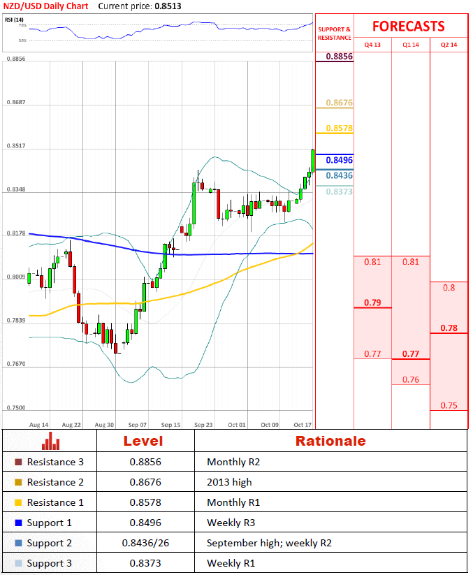 货币对似乎获得势头,在从0.830反弹之后。目前它目标在月第一阻力位。提升在它上方可能放入2013年高点。我们不期望货币对将轻易地突破它。我们应该看到一些停止的种类。万一在任何这些水平上失败了,我们应该搜索9月高点在0.8436。