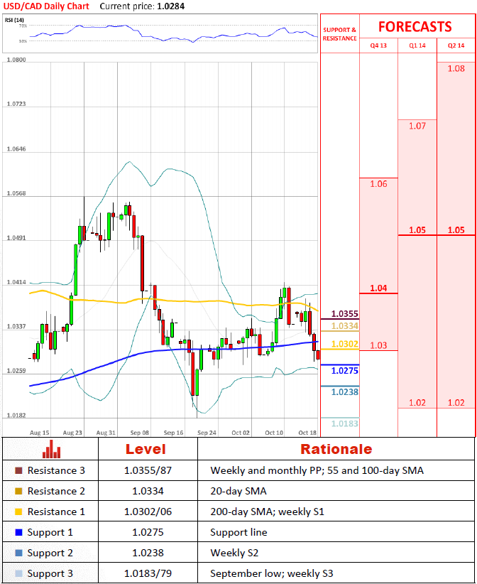 货币对进一步贬值并且正靠近1.0275,货币对保持的支撑水平有三周,并不是那么遥远。如果货币对跌破它,它将放入9月低点,暂时的目标在周第二支撑位上。我们并不预期任何这些水平现在开启货币对的恢复,但他们非常有可能暂停货币对。只有一个高峰在200日均线上方,然后是20日均线将提升大部分这种压力。
