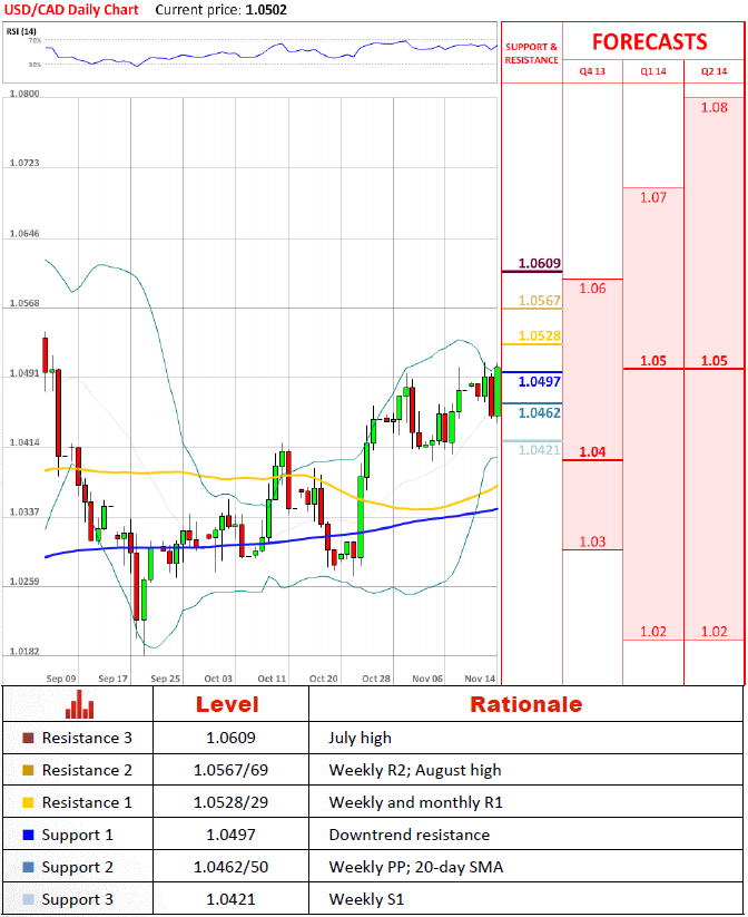 在没能巩固在下行趋势阻力位上方之后(连接7月和8月高点)货币对得到一个看涨冲力20日均线并且已经让峰值超过提及到的下行趋势。为了阻止回调货币对应该峰值超过1.0528。那将放入8月高点。另一个跌破1.0462可能引起一种抛售直到1.0421。