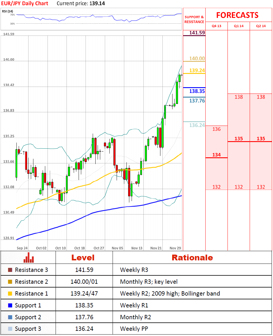 正如期望的货币对继续升值,但2009年高点不愿意轻易放弃。我们不期望太多将会改变直到交易周结束。甚至货币对提升更高,几乎确认140日圆将导致它后退一步。总之,我们期望货币对横盘整理一段时间。万一出乎意料地失败了如果不低于137.76。
