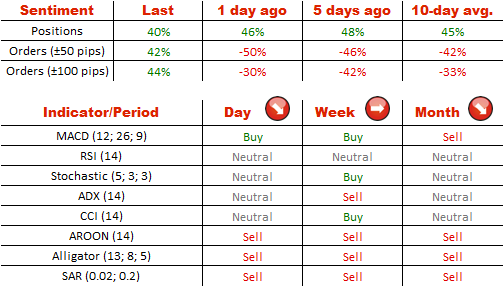 正如欧元兑日圆一样,买单和卖单之间的比例在澳元兑美元上经受显著的改变。来自现货100点之内买单的份额从35%飙升至72%。同时,做多仓位的比例仍然或多或少一样并且目前在70%。