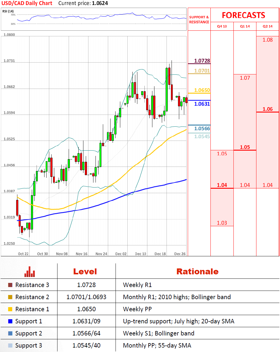 目前上升趋势在1.0609应付卖出压力,意味着货币对可能仍然开始另一个攻击在2010年高点1.0701/1.0693。万一这种重要的阻力位屈服,美元兑加元将更有可能维持看涨通道直到它遇到长期(连接峰值直到2012年9月)阻力线1.0923。
