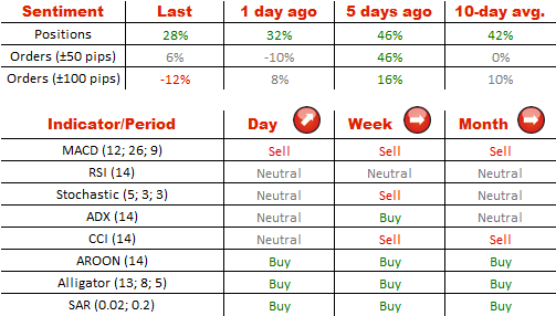 关于美元兑加元情绪的积极性继续减弱。做多仓位超过做空的优势进一步缩小并且现在构成28%,尽管它足以谈到市场仍然看到这种货币对是强劲地看涨。