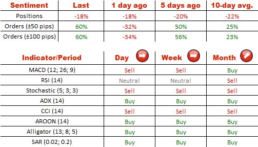 打开的做空仓位的份额在瑞士外汇市场上仍然与昨天完全一样,考虑到59%的仓位是做空。另一方面,订单之间的分配,是完全不稳定的。现在,五天前,买单数量(80%)大大地超过了卖单(20%)。