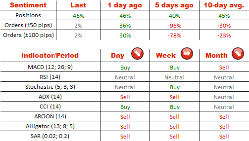 正如上周五一样,有大量的多头在澳元兑美元市场的参与者上超过空头—前者份额构成73%。同时,买单和卖单之间的差距是最低的—仅仅两个百分点支持买单。