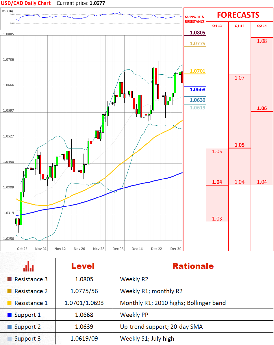 似乎已经是另一种尝试美元兑加元上升超过1.0701/1.0693原来不是成功的—价格从2010年高点远离到上升趋势线。这种支撑在1.0639应该能够阻止来自即将更深度的下跌并且重新点燃货币对的多头,最后被预计超越最近的阻力位,由每周研究表明。