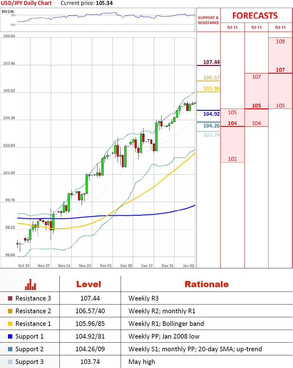 美元兑日元已经确定104.92/81作为新的支持,因此可能会进一步上涨。尤其是考虑到货币对在所有三个相关的时间框架(日,周和月图)都是看多的。这次上升的初始目标应该是105.96/85,而上升势头更严峻的考验可能会发生在106.57/40。