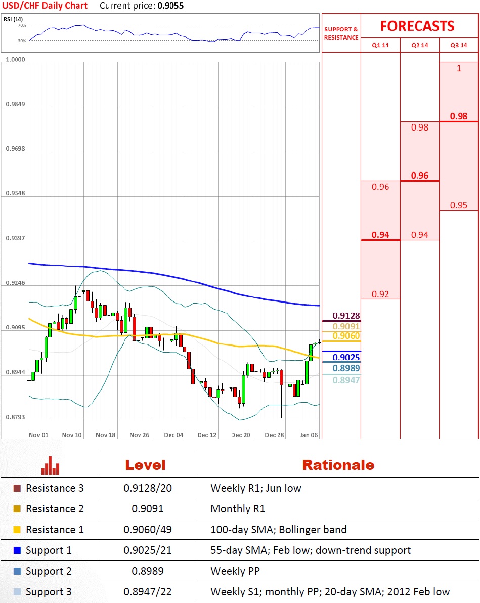 无法穿透的下降趋势线构建了一个强劲的需求区域,在月第一支持位水平周围,美元兑瑞郎被推动穿过2012年二月低点及下降趋势阻力线。现在,鉴于0.9025/21比较偏远,货币对可能开始瞄准六月低点0.9128/20,而随后的目的可能是200天均线。
