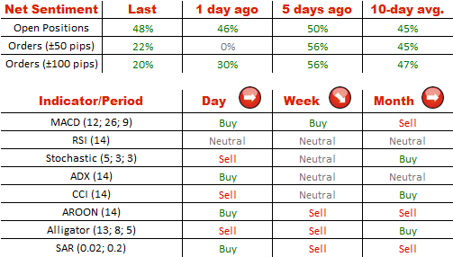 SWFX市场参与者对于美元兑瑞郎的态度比星期五更加乐观。目前74%的人持有多头头寸,只有26%的人认为瑞士法郎会比美元表现更出色。说到订单,在现价100点内,55%准备买入而45%销售45%美元。