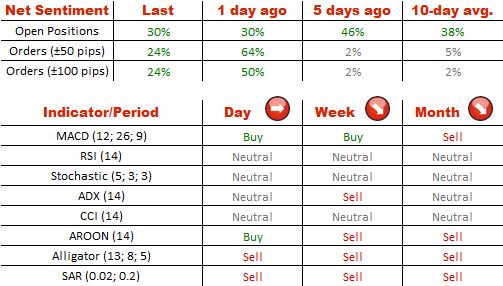 看涨市场参与者的比例维持在与昨天一样,明确地在65%,意味着绝大部分交易者继续预测澳元的升值,尽管最后两个半月表现出它的弱势,即8个数字的下降。