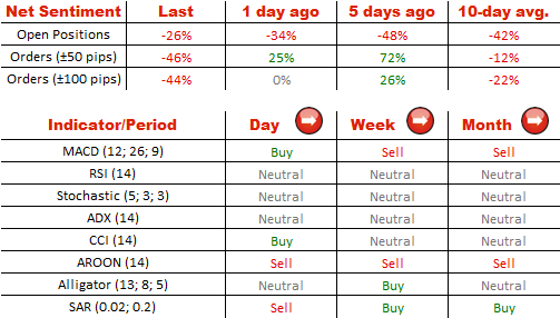 瑞士外汇市场交易者不那么确定新西兰元将经历贬值—空头仓位的份额从67%缩小到63%。然而,我们应该注意在卖单数量的大幅获益—刚好在24小时内从50%增加到74%。