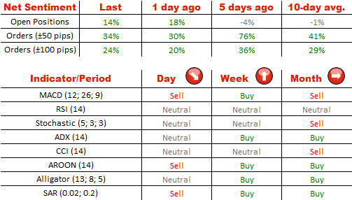 一旦美元触及最接近阻力,市场参与者对于货币的前景变的更不乐观-多头的比例从59%下降到57%。与此同时,更多的交易者正计划买入美元-买入订单的部分从60%上升到了62%。