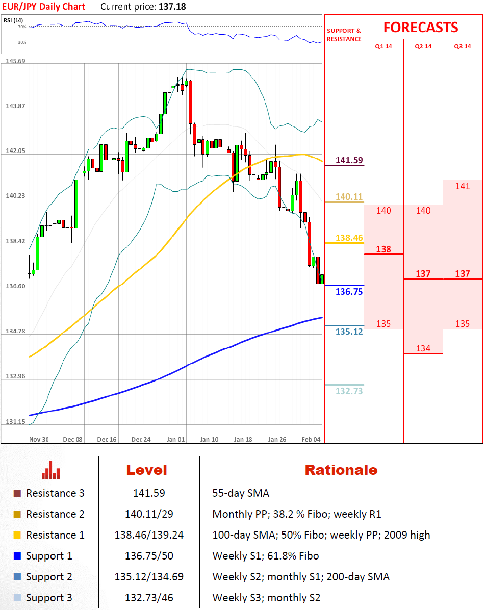 货币对昨天没能在138日圆附近巩固并且跌破137日圆。我们在这附近正看到一些微弱的看涨,但考虑到几天以前发生的,我们更有可能看到另一个下跌。在这种情况下,我们应该开始着眼于135日圆附近的一连串关口。恢复,至少超过135日圆,似乎目前极不可能,最多我们可能看到峰值在138日圆并且在它附近巩固。